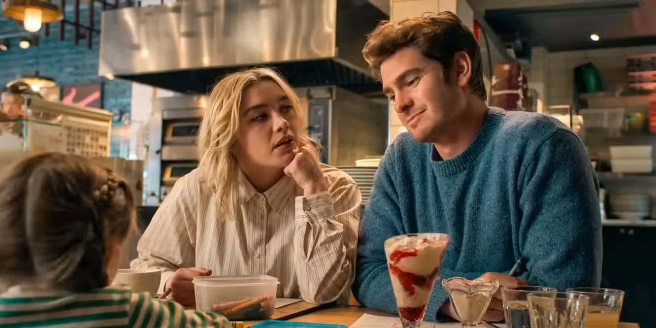 電影的其中重要一幕,就是女主角為了接受化療時必須剃光頭髮,而正是安德魯加菲爾德親手執行這重要的環節。她早已有心理準備,也不怕自己的髮型有所改變,卻仍感受到那一刻的情緒重擊。彷彿是面對過成名、網路霸凌與分手等人生關卡後,她對自己做出的某種告別與蛻變。